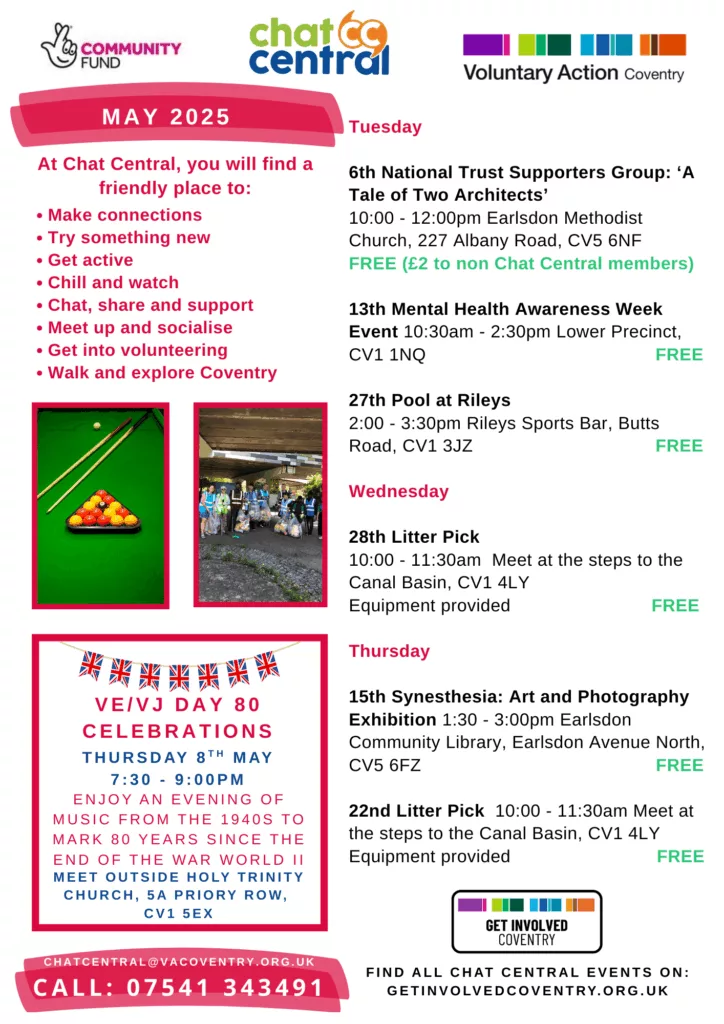 Email: c.monaghan@vacoventry.org.uk chatcentral@vacoventry.org.uk