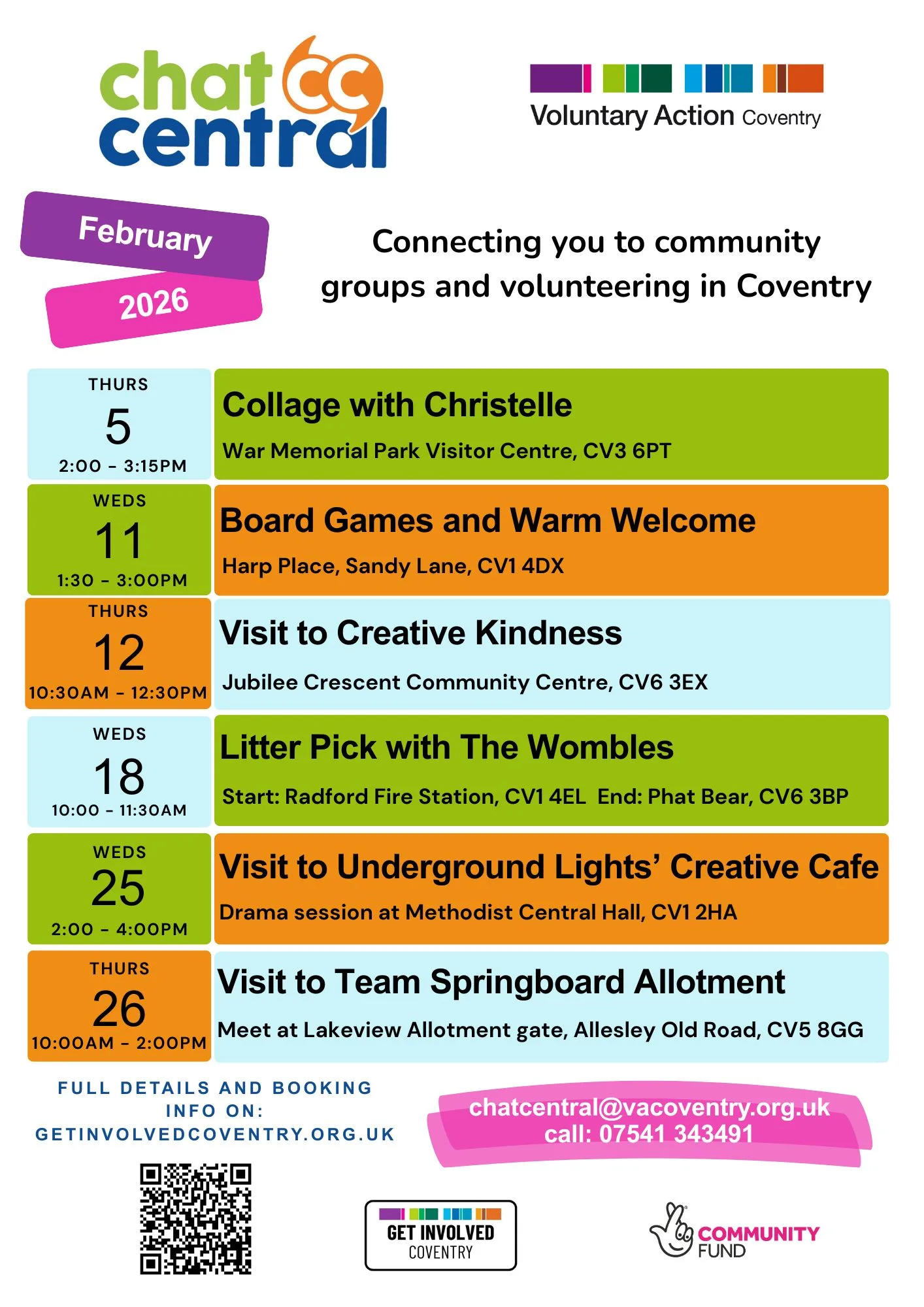 View activity listings in more detail, here on Chat Central’s ‘Get Involved Coventry’